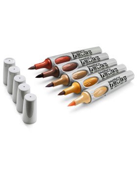 Votre ensemble complet de crayons à contour Neuland No.One® : 2 marqueurs à contour No.One avec chacun une pointe biseautée, une pointe pinceau et une pointe ronde.
