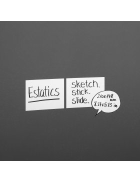 Les Estatics sont des notes autocollantes chargées électrostatiquement qui ne nécessitent ni épingles ni colle. Qu'il s'agisse d'un travail individuel ou en groupe, d'un brainstorming, d'une gestion de projet agile, d'un Kanban ou d'une présentation : ils adhèrent plus longtemps à presque toutes les surfaces lisses, comme le papier, la mousse dure ou le tableau blanc, le verre, le plastique, le métal, le liège ou le bois.