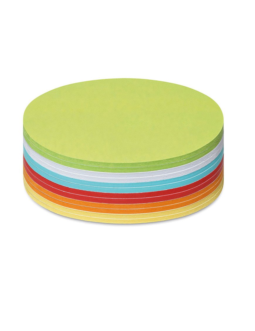 300 Cartes rondes moyennes autocollantes Stick-It en papier recyclé dans des couleurs assorties.
